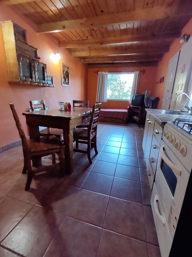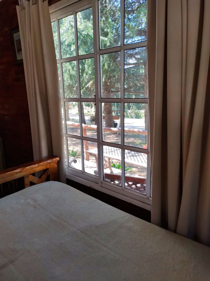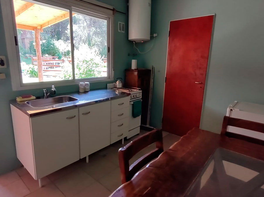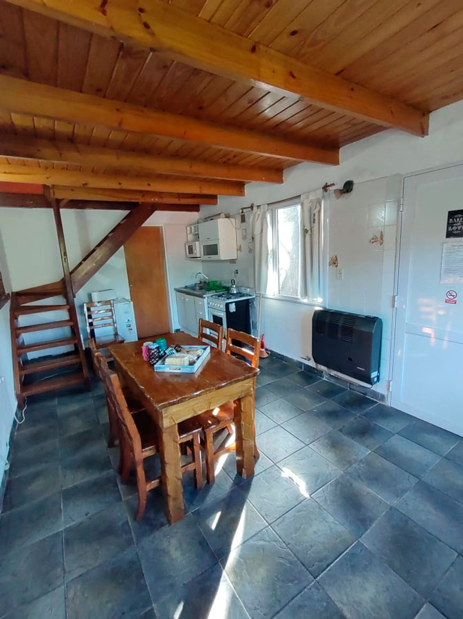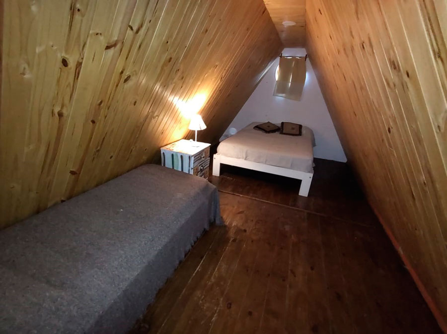 Alpina con cama matrimonial y cama simple en planta alta y cama marinera en planta baja. Con ventilador, calefacción por gas natural.