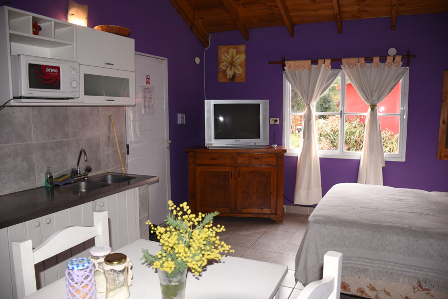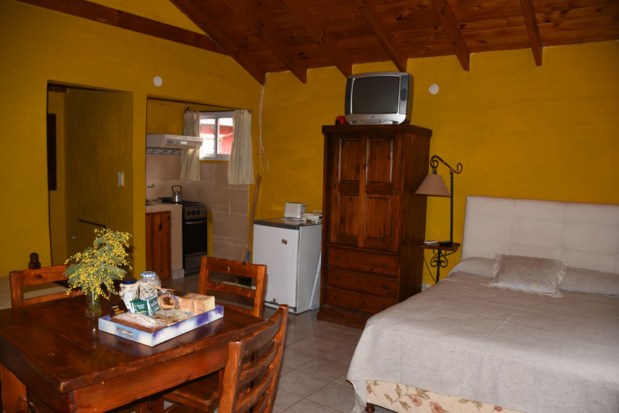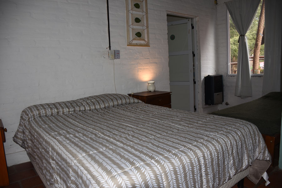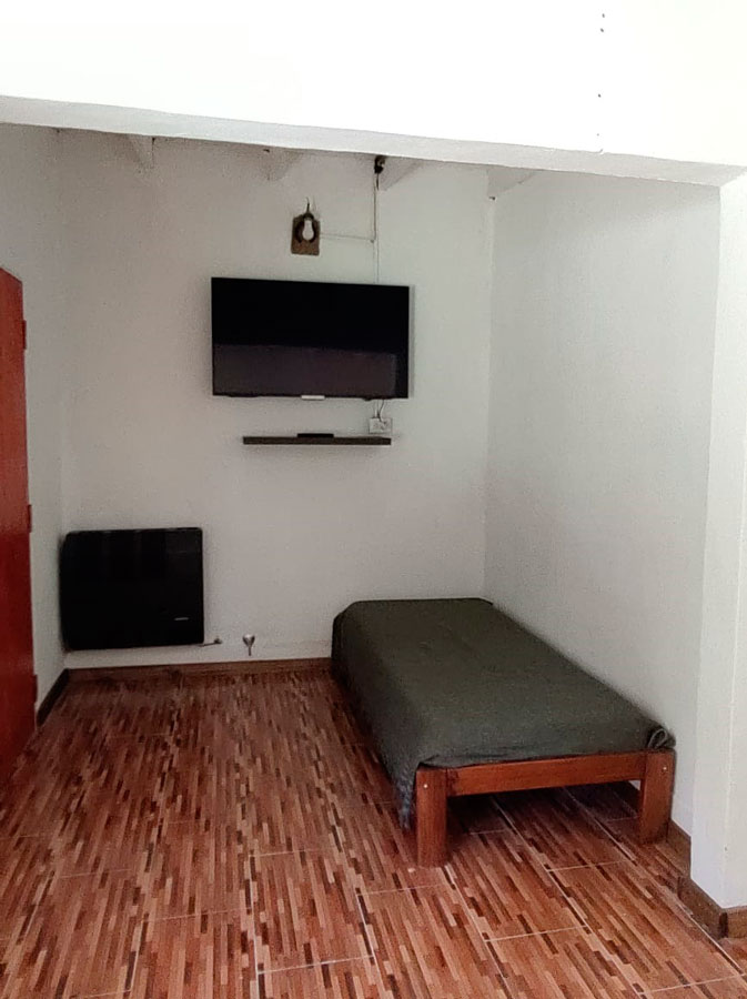 Amplio monoambiente con cama matrimonial. Con ventilador y calefacción por gas natural.