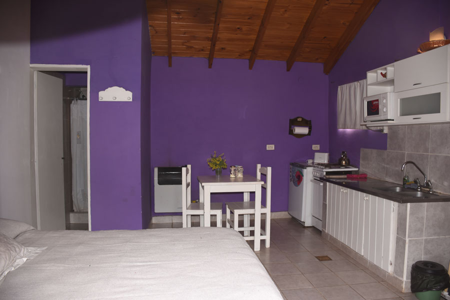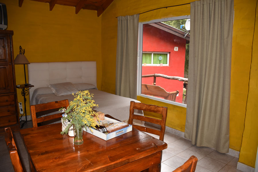 Amplio monoambiente con cama matrimonial. Con aire acondicionado frío/calor y calefacción por gas natural.