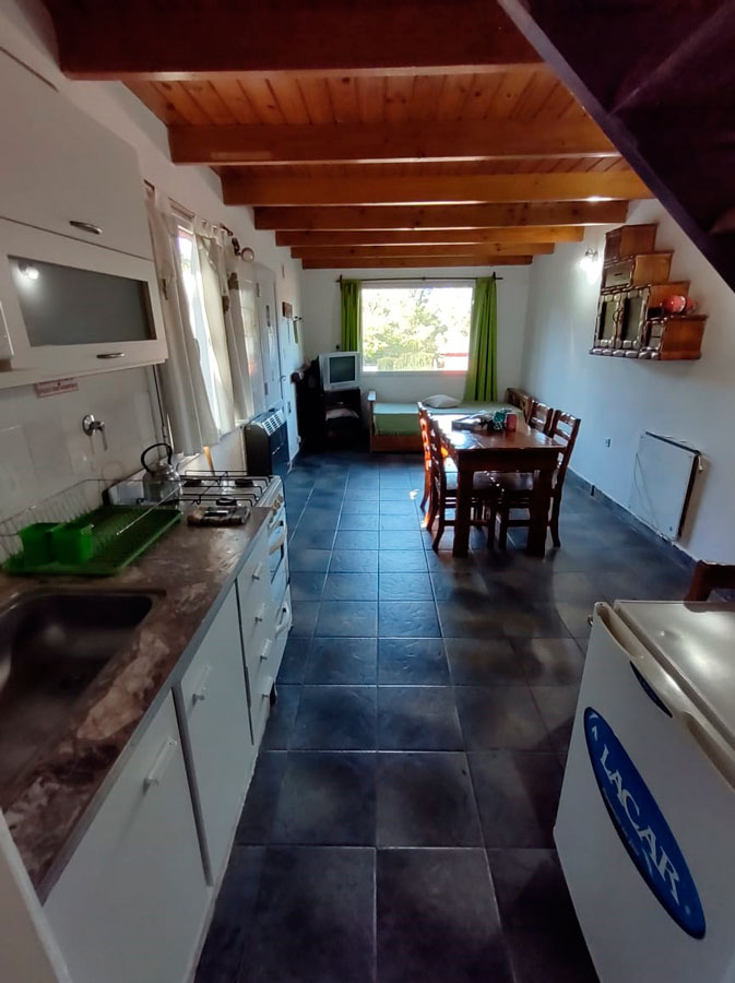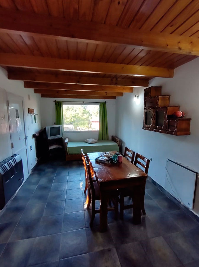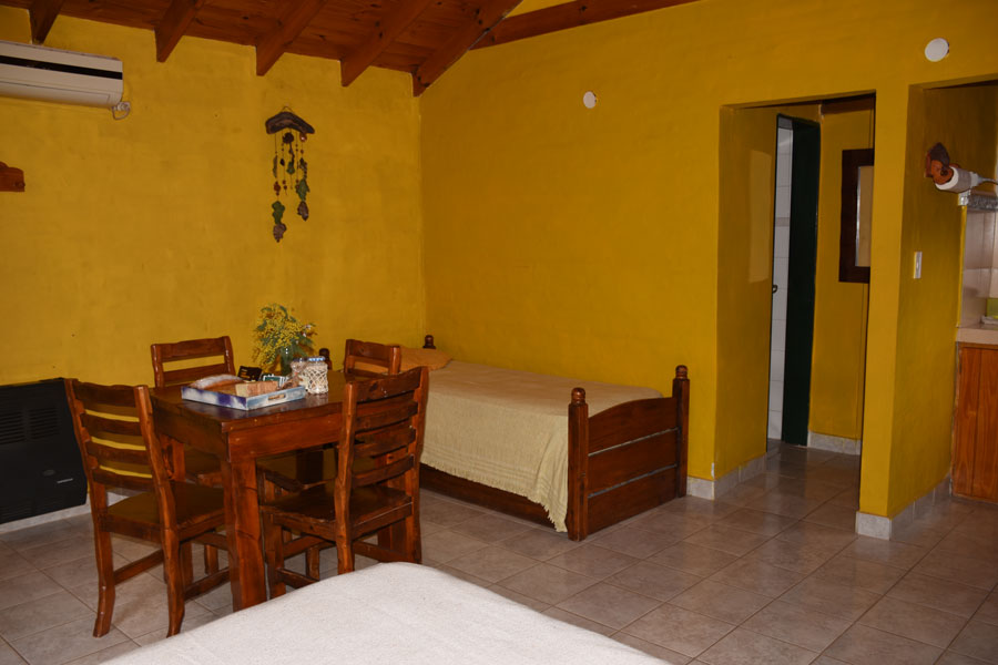 Amplio monoambiente con cama matrimonial y cama marinera. Con aire acondicionado frío/calor y calefacción por gas natural.