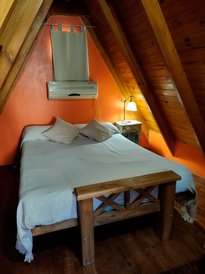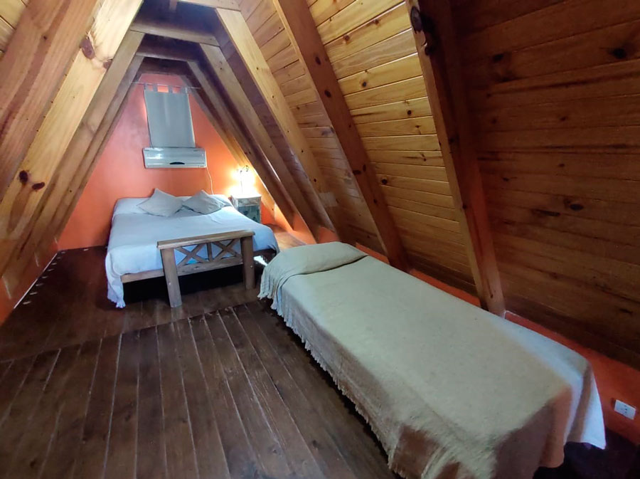Alpina con cama matrimonial y cama simple en planta alta y cama marinera en planta baja. Con ventilador, calefacción por gas natural.