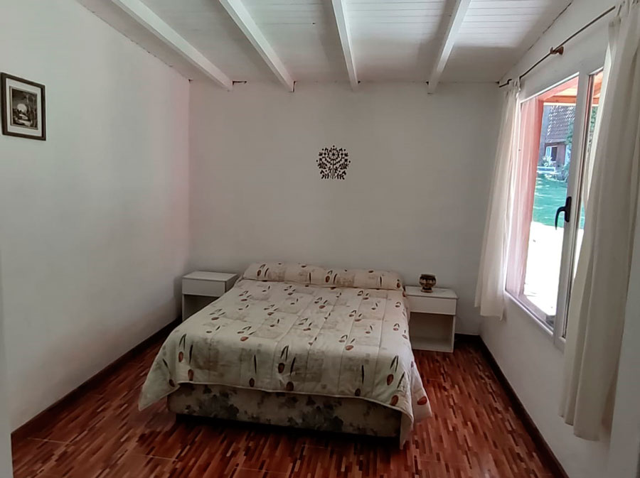 dormitorio con cama matrimonial y cama simple en el living. Con aire acondicionado frío/calor y calefacción por gas natural.