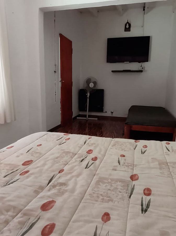 Amplio monoambiente con cama matrimonial. Con ventilador y calefacción por gas natural.